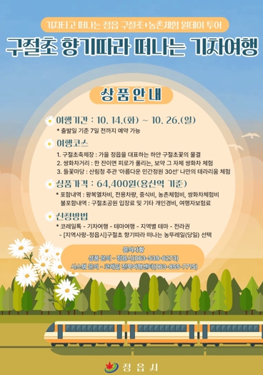 | ▲ 기차 타고 떠나는 정읍 가을 정취…‘농뚜레일 투어’ 19일까지 참가자 모집 |