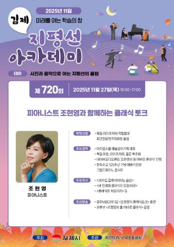 [메이저뉴스]다양한 분야의 명사를 초청해 시민의 문화적 소양의 높이고 삶의 품격을 더하는 교양 강좌인 김제지평선아카데미가 오는 27일 제720회 강좌에 조현영 아트앤소울 예술강의기획 대표를 초청해 “피아니스트 조현영과 함께하는 클래식 토크”라는 주제로 강연을 진행한다.