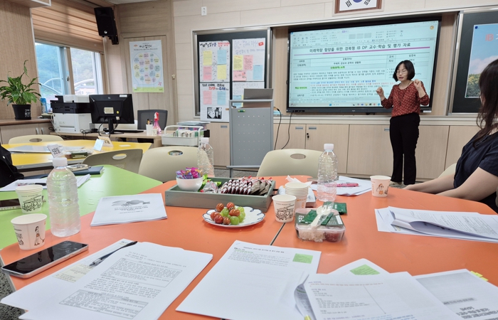 연수에서는 지난 7월 경북교육청 주최로 열린 ‘IB OPEN CLASS’ 활동을 재구성해 교사들이 학습자의 관점에서 수업을 경험하고, IB Summer School 사례를 바탕으로 소규모 팀별 수업 설계 워크숍을 운영했다.
