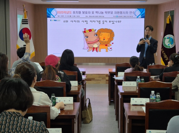 | ▲ 2025학년도 유치원 보호자 및 책나눔 학부모 자원봉사자를 대상으로 연수 |