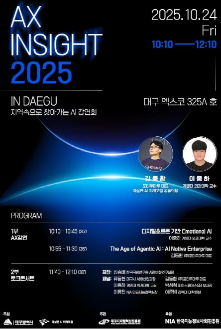 [메이저뉴스]대구광역시는 (사)과실연 AI미래포럼과 함께 10월 24일(금) 대구 엑스코에서 ‘AX·Security Insight 2025 In Daegu’를 개최한다.