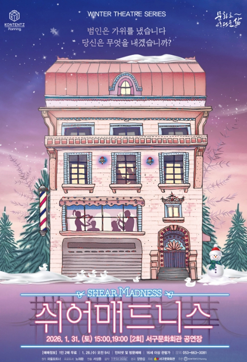 [메이저뉴스] 서구문화회관은‘Winter Theatre Seires(겨울 연극 시리즈)’의 첫 번째 순서로 연극'쉬어매드니스'를 1월 31일 오후 3시, 7시 (2회) 무대에 올린다.