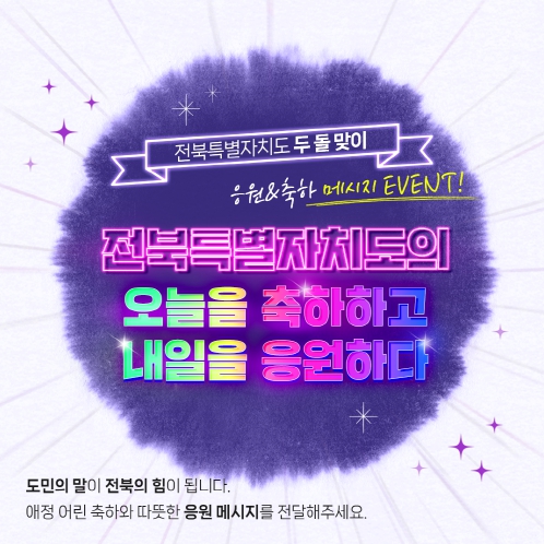 [메이저뉴스]전북특별자치도는 출범 2주년을 맞아 도민이 직접 참여하는 '도민 참여 축하·응원 메시지 이벤트'를 1월 12일부터 23일까지 운영한다.