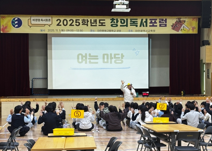 [메이저뉴스]대전시교육청은 11월 1일 대전둔원고등학교에서 과정중심 독서활동에 기초한 독서‧토론 문화를 확산하기 위해 관내 고등학교 독서‧논술 동아리 15팀, 학생 60명과 지도교사가 참가한 가운데 ‘2025학년도 창의독서포럼’을 개최했다고 밝혔다.