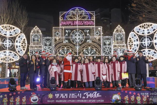 [메이저뉴스]마포구는 12월 2일 오후 6시 30분, 마포구교구협의회와 함께 연말 분위기로 물든 레드로드 일대에서 ‘빛거리 점등식 in 레드로드’를 개최하고 구민들과 함께 따뜻한 겨울밤을 밝혔다.