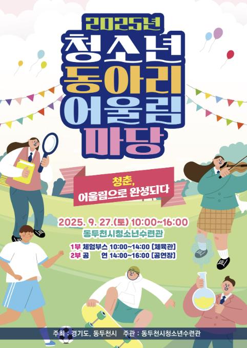 [메이저뉴스]동두천시는 오는 9월 27일 동두천시 청소년수련관(지행로 95)에서 '2025년 동두천시 청소년 동아리 어울림마당'을 개최한다고 밝혔다.