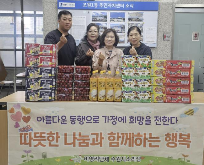 | ▲ 소리샘봉사단, 수원시 장안구 조원1동 취약계층에 식료품꾸러미 나눔 |