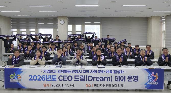[메이저뉴스]안양산업진흥원은 15일 오후 3시30분 안양창업지원센터 강당에서 관내 기업인 150여 명을 대상으로 지역사회 문화·체육 활성화를 위한 ‘2026 CEO 드림(Dream) 데이’를 열었다.