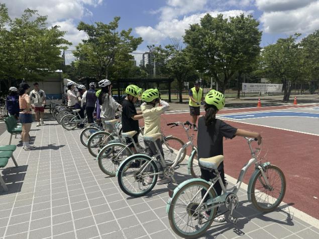 전문 강사가 자전거의 기본 개념, 안전 수칙, 교통법규, 안전장구 착용 요령 등을 알려준다. 또 교통표지판, 횡단보도, 원형·지그재그형 자전거도로 등으로 구성된 연습장에서 모의 주행을 하며 실습 교육을 한다. 신청은 수원시 홈페이지와 새빛톡톡 앱·홈페이지에서 하면 된다.