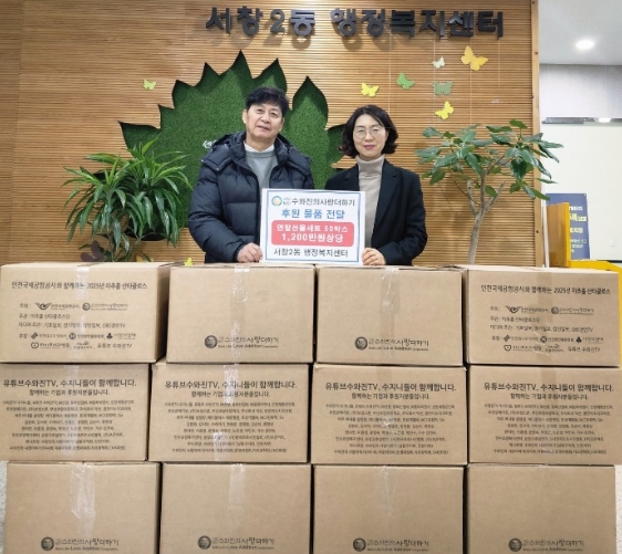 [메이저뉴스]인천시 남동구 서창2동 행정복지센터는 (사)수와진의 사랑더하기로부터 어려운 이웃을 위한 겨울 선물세트 50상자를 기부받았다고 19일 밝혔다.