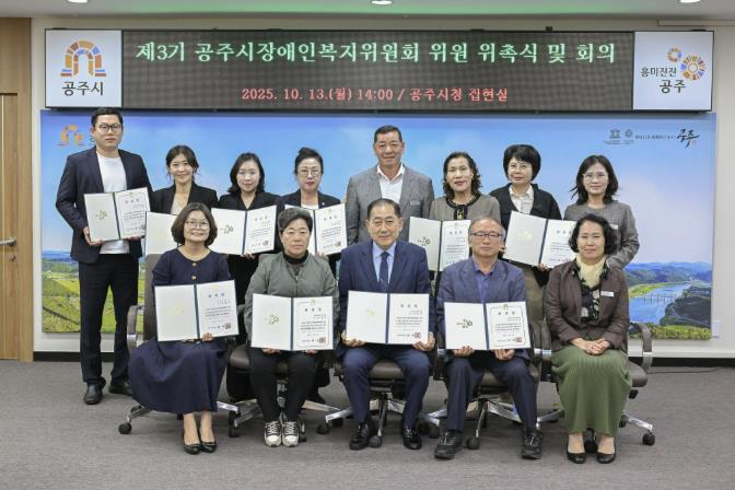 [메이저뉴스]공주시는 지난 13일 시청 집현실에서 ‘제3기 공주시 장애인복지위원회 위원 위촉식 및 회의’를 개최하고, 민관이 함께 장애인 정책 현안 해결에 나서기 위한 본격적인 활동을 시작했다고 밝혔다.