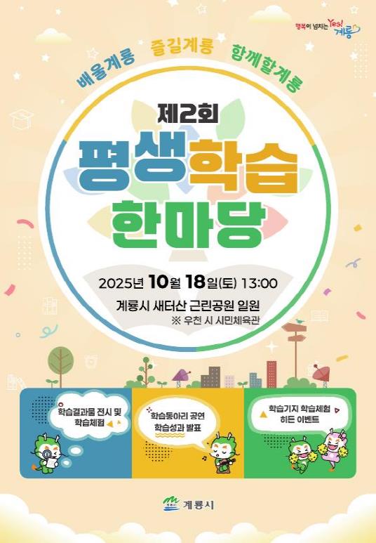 [메이저뉴스]계룡시는 오는 18일 오후 1시부터 시청 앞 새터산 근린공원에서 시민이 주도하는 배움의 축제 “2025 제2회 계룡시 평생학습 한마당”을 개최한다고 밝혔다.