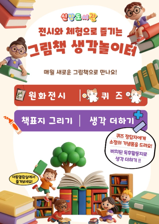 [메이저뉴스]천안시 신방도서관은 전시와 체험이 어우러지는 ‘그림책 생각놀이터’를 운영한다고 19일 밝혔다.