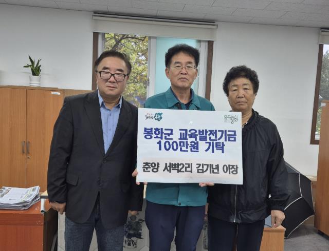 [메이저뉴스]춘양면 서벽2리 김기년 이장은 지역 인재 육성과 교육환경 개선을 위한 뜻을 모아 지난 13일 봉화군 교육발전기금으로 100만 원을 기탁했다.
