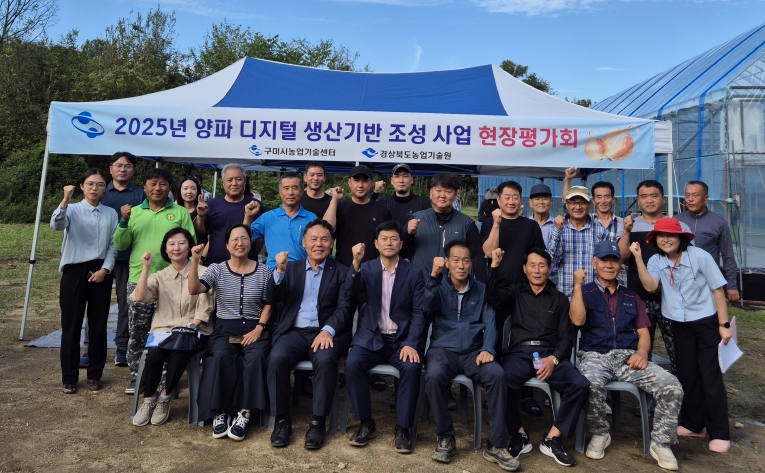 [메이저뉴스]구미시는 9월 29일 선산읍 생곡리 시범농가에서 ‘2025년 양파 디지털 생산기반 조성’ 사업 평가회를 열고, 기계 정식에 적합한 양파 육묘 모델을 선보였다. 이날 행사에는 양파 재배 농업인들이 참석해 새 기술 적용 현장을 직접 확인했다.