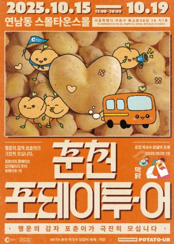 춘천시가 15~19일 닷새간 서울 마포구 연남동 ‘스몰 타운 스몰’에서 ‘춘천 포테이투-어(with 막국수·닭갈비 축제)’ 팝업스토어를 운영한다.