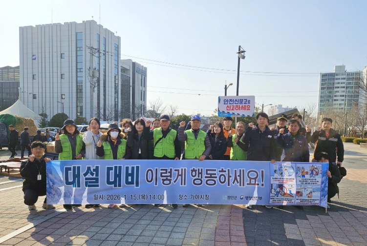 이번 캠페인에는 함안군을 비롯해 함안소방서, 함안지방공사, 안전보안관 등 관계기관에서 30여 명이 참여했으며, 군민을 대상으로 대설 대비 생활 속 안전수칙을 집중 홍보했다.