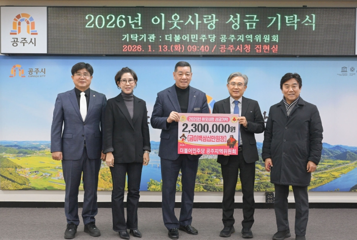 [메이저뉴스]공주시는 지난 13일 시청 집현실에서 더불어민주당 공주지역위원회가 지역의 어려운 이웃을 돕기 위해 성금 230만원을 기탁했다고 밝혔다.