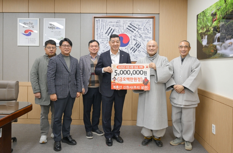 [메이저뉴스]공주시는 대한불교조계종 신원사가 지난 16일 시청 상황실에서 이웃돕기 성금 500만 원을 전달했다고 밝혔다.