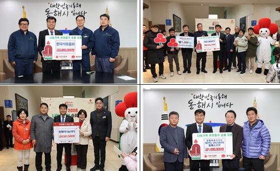 심규언 동해시장은 “연말마다 이어지는 시민과 단체들의 따뜻한 나눔이 지역사회를 더욱 따뜻하게 만든다”며 “기탁해 주신 소중한 마음이 꼭 필요한 이웃들에게 잘 전달될 수 있도록 최선을 다하겠다”고 말했다.