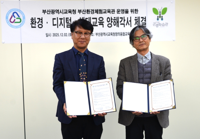 [메이저뉴스]부산광역시교육청 창의융합교육원은 지난 2일 창의융합교육원에서 디지털곤충학습관과 부산환경체험교육관 운영을 위한 환경·디지털·생태교육 양해각서(MOU)를 체결했다고 밝혔다.
