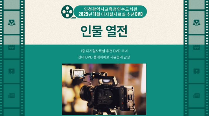 [메이저뉴스]인천광역시교육청연수도서관은 11월 한 달간 1층 디지털자료실에서 ‘인물 열전’을 주제로 추천 DVD 전시를 운영한다.