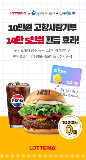 | ▲ 위기브·롯데멤버스·롯데리아 고향사랑기부 이벤트 |