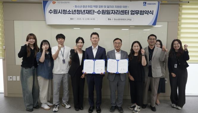 [메이저뉴스]수원시청소년청년재단과 수원일자리센터는 10월 2일, 청소년청년의 취업 역량 강화와 일자리 지원을 위한 업무협약(MOU)을 체결했다.