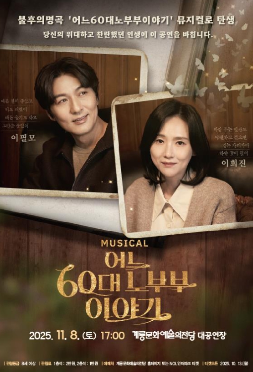 [메이저뉴스]계룡시는 오는 11월 8일 오후 5시, 계룡문화예술의전당 대공연장에서 뮤지컬 ‘어느 60대 노부부 이야기’를 공연한다.