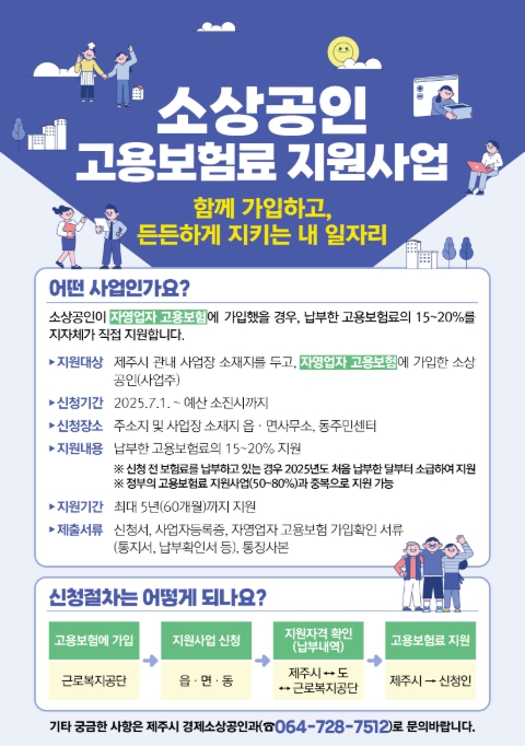 사업 신청은 주소지·사업장 소재지 읍·면사무소 또는 동주민센터에서 접수 가능하며, 보다 자세한 사항은 제주시 누리집 또는 제주시 경제소상공인과로 문의하면 된다.