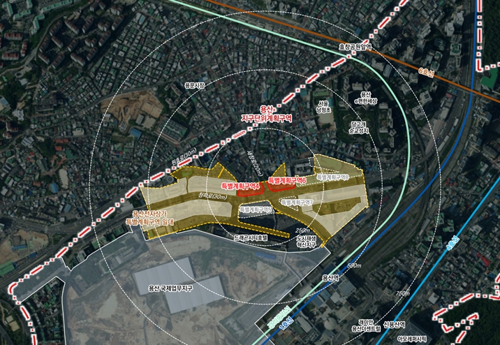 나진상가10·11동(특별계획구역4), 14동(특별계획구역6) 부지는 용산전자상가 일대 관문이자 핵심 입지인 용산전자상가 사거리에 위치하고 있다.