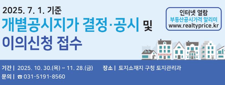 [메이저뉴스]수원시 영통구는 2025년 7월 1일 기준 개별공시지가를 10월 30일 결정·공시하고, 11월 28일까지 이의신청 기간을 운영한다. 이번에 결정·공시되는 대상은 올해 1월 1일부터 6월 30일까지의 토지 분할, 합병, 지목변경 등 변동 사항이 있는 58필지이다.