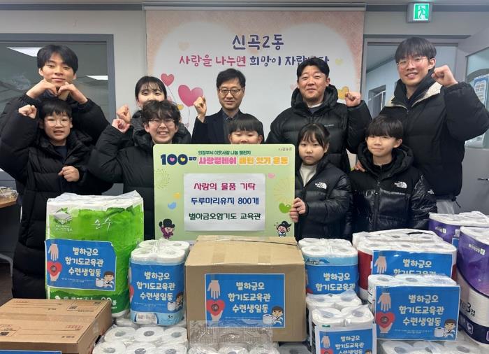 | ▲ 아이들과 함께 이어온 따뜻한 나눔, 의정부시 신곡2동 별하금오합기도 교육관 휴지 800개 기탁 |