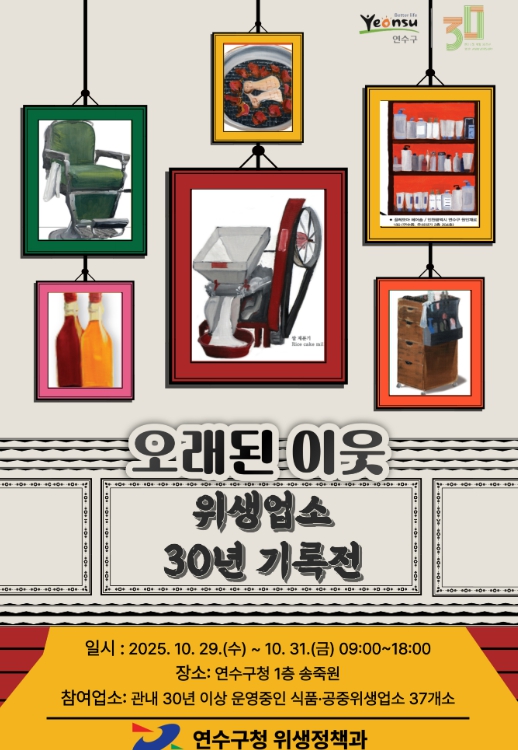 [메이저뉴스]연수구는 오는 29일부터 31일까지 3일간 구청 1층 송죽원에서 ‘오래된 이웃 : 위생업소 30년 기록전’을 개최한다.