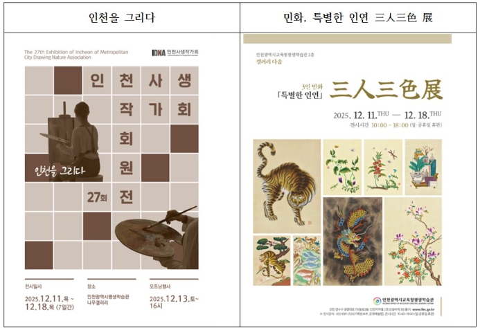 | ▲ 12월 전시 ‘인천을 그리다’ 와 ‘민화, 특별한 인연 삼인삼색 전’ |