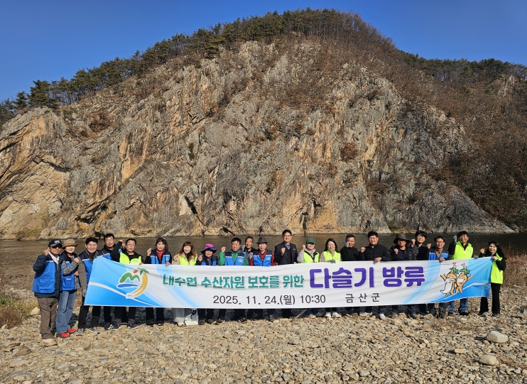 [메이저뉴스]금산군은 지난 24일 부리면 적벽강 일원에서 지역 하천 생태계 복원과 수질 개선을 위해 약 300만 패의 다슬기를 방류했다.