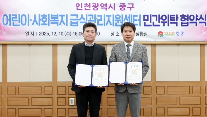 [메이저뉴스]인천시 중구는 최근 인하대학교 산학협력단과 ‘인천 중구 어린이·사회복지 급식관리지원센터 위탁 운영 협약’을 체결했다고 11일 밝혔다.