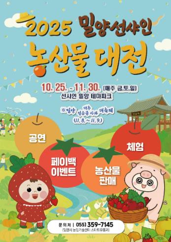 밀양시 관계자는 “밀양 선샤인 농산물 대전은 밀양의 우수한 농산물과 농업인의 정성을 한자리에서 경험할 수 있는 소중한 축제의 장”이라며 “많은 시민과 관광객들이 방문해 밀양 농산물의 우수성을 직접 체험하고, 지역 농업과 경제에 활력을 더하는 계기가 되기를 바란다”라고 말했다.