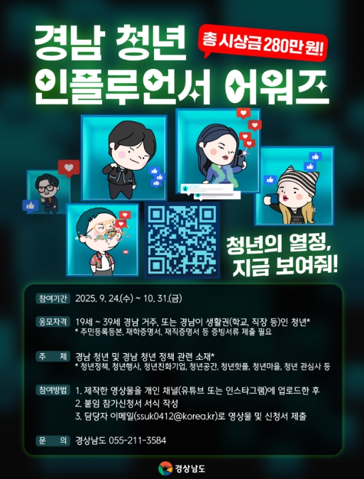 [메이저뉴스]경남도는 ‘2025 경남 청년 인플루언서 어워즈’를 개최한다고 17일 밝혔다.