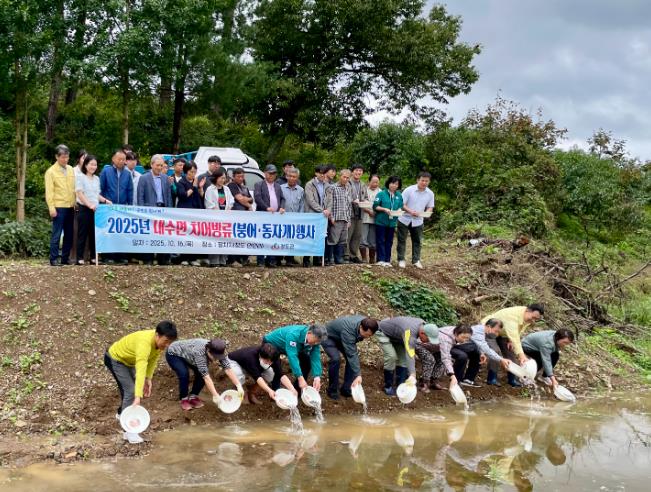 이번 치어 방류는'경상북도수산자원연구원토속어류산업화센터'와 협력하여 진행됐으며, 지역 주민과 관계 공무원들이 함께 참여해 붕어와 동자개를 직접 방류하며 지역 생태계 보전의 의미를 더했다.