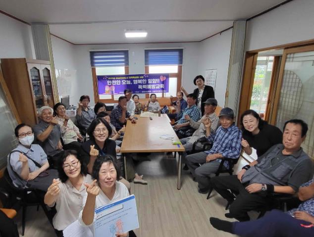| ▲ 찾아가는 시니어 폭력예방교육 참여자들이 교육을 마친 후 기념 촬영을 하고 있다. |