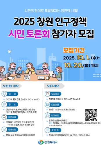 | ▲ ‘2025 창원 인구정책 시민토론회’참가자 모집 |