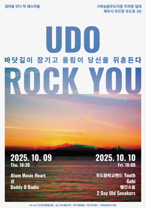 [메이저뉴스]제주시 우도면은 오는 10월 9일과 10일 이틀간 농협우도지점 주차장 일대에서 인디 락 페스티벌 ‘U DO ROCK YOU 2025’를 개최한다.