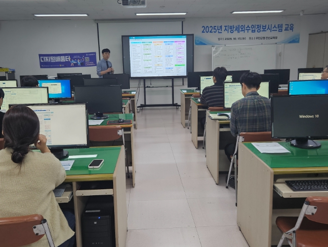 [메이저뉴스]전남 무안군은 지난 15일 군청 전산교육장에서 부과·징수 담당자 30여 명을 대상으로 ‘2025년 하반기 지방세외수입정보시스템 교육’을 실시했다.