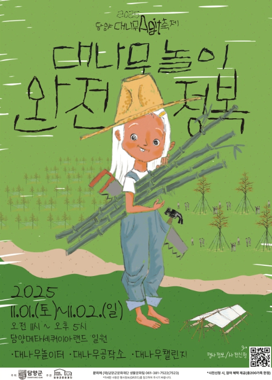[메이저뉴스]담양군문화재단은 11월 1일부터 2일까지 이틀간 담양 메타세쿼이아랜드 일대에서 전 세대를 위한 참여형 문화예술교육축제, '2025 담양대나무아지트축제:대나무놀이X완전정복'을 개최한다고 밝혔다.