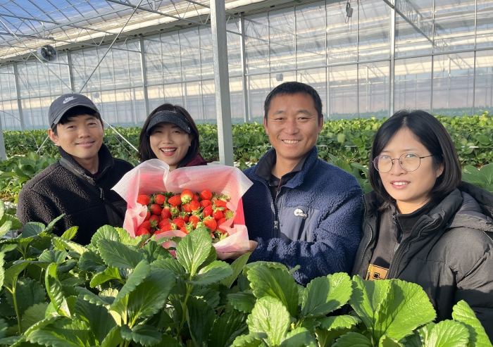 [메이저뉴스]강진군이 2025년에 개소해 첫 입주자를 받은 임대형 스마트팜에서 올해 첫 딸기를 수확한 청년 농업인들과 소통의 시간을 가졌다.