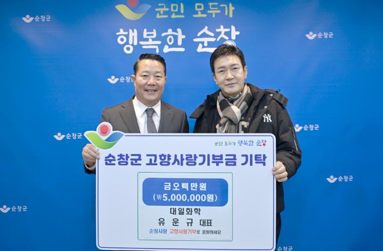 [메이저뉴스]순창군은 9일 대일화학 유운규 대표가 고향사랑기부금 500만원을 기탁했다고 밝혔다.