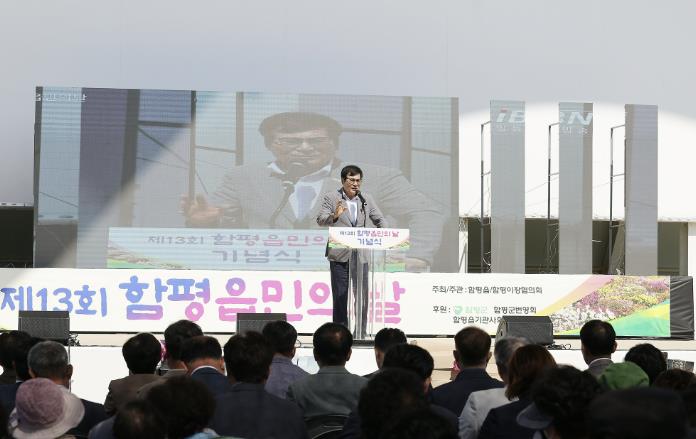 | ▲ 1일 제13회 함평읍민의 날, 이상익 함평군수 기념사 모습 |