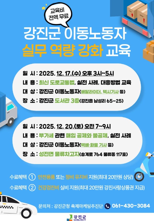 [메이저뉴스]강진군이 이동노동자를 위한 맞춤형 교육 프로그램을 오는 17일과 20일 2회 간 진행하며 본격적인 교육 운영에 나선다.