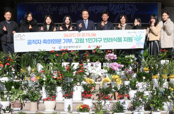 [메이저뉴스]광주 동구는 최근 인사이동 시 공직자들이 받은 축하 화분을 기부받아 고립 위기에 놓인 1인 가구에 반려식물로 전달하는 ‘인사이동 축하 화분 나눔 전달식’을 가졌다고 밝혔다.